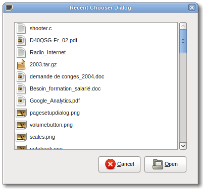 dialog = gtk_recent_chooser_dialog_new ("Recent Documents",